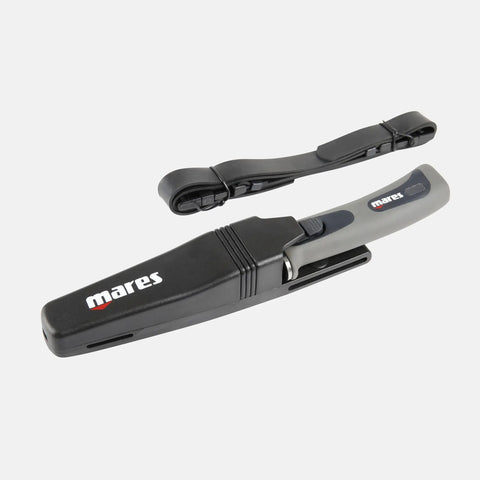 Equip yourself with the Mares Pure dive knife, a versatile and essential tool for every diver. The 11.8 cm AISI 420 stainless steel blade ensures durability and precision in underwater tasks. With a total length of 23 cm, this knife features a smooth-edged curved side and a serrated-edge straight side with a convenient line cutter. The non-slip handle, enhanced by over molding, provides a secure grip, while the easy release system ensures quick access. Safely carry the Pure in its rigid sheath, which can be attached to the calf or thigh using practical straps.